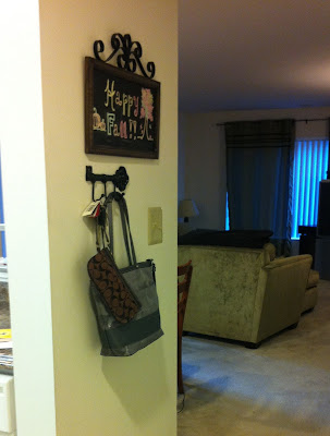 I HAD to have something like a printable in my life, so here's what I did. A few weeks ago, I bought an adorable chalkboard (World Market) and key hook (Etsy) for my entryway and have been creative with the colors, words, and picture on the chalkboard to match the season. I had "Happy Fall" up for a really long time as you can see below.