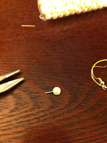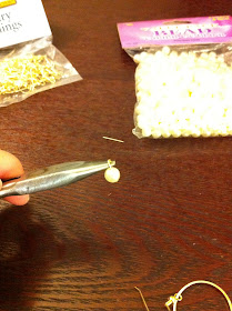 Step 2: Place a headpin through a pearl bead and cut it with the pliers so that it still sticks out about 3/4 in.