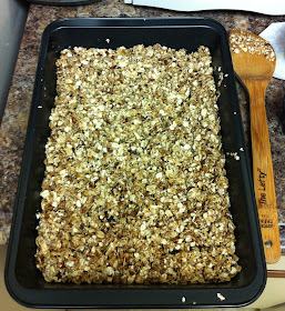 A woman I work with made honey nut granola for a staff breakfast and pretty much everyone who ate it asked for the recipe. She got so sick of people asking her that she posted in on the private server for all staff to see it. It's delicious and so easy! I made it last evening and decided to share the secret to the best granola ever! Here's the recipe: