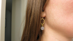 I'm back at it! Jewelry-making that is. I spotted some really beautiful light greyish-blue beads at Michaels and was inspired to make more earrings (and use up some of the materials  from my last earrings project). I also bought a 6 pack of gold toggle clasps (not realizing toggles are INTENDED for bracelets/necklaces until I got home and saw the bars in the pack too, hehe). Anyway, the toggle clasps worked out very nicely as the base for my new earrings, and this little misunderstanding made me realized how important it is to think outside the box when creating new pieces. I also found that I could mix and match gold ovals (toggles), circles, beads, and pearls to create subtly different style earrings. Now, I can't decide which one I like best. Which is your favorite?