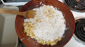 4. Mix dry ingredient in a large bowl (flour, baking soda, salt, walnuts, and apples).