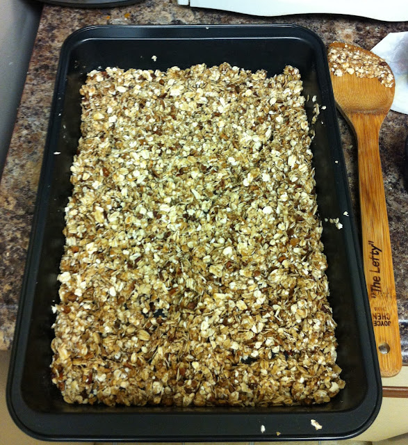 A woman I work with made honey nut granola for a staff breakfast and pretty much everyone who ate it asked for the recipe. She got so sick of people asking her that she posted in on the private server for all staff to see it. It's delicious and so easy! I made it last evening and decided to share the secret to the best granola ever! Here's the recipe: